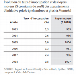 Le taux d’inoccupation des logements se situe à seulement 1,9 % à Montréal, alors qu’il était de 3,9 %, à l’automne 2016. Le taux est autour de 0,5% dans certains quartiers centraux en demande. On n’a pas vu des taux d’inoccupation aussi bas depuis 2003. La pénurie est particulièrement présente pour les logements de 3 chambres et plus.