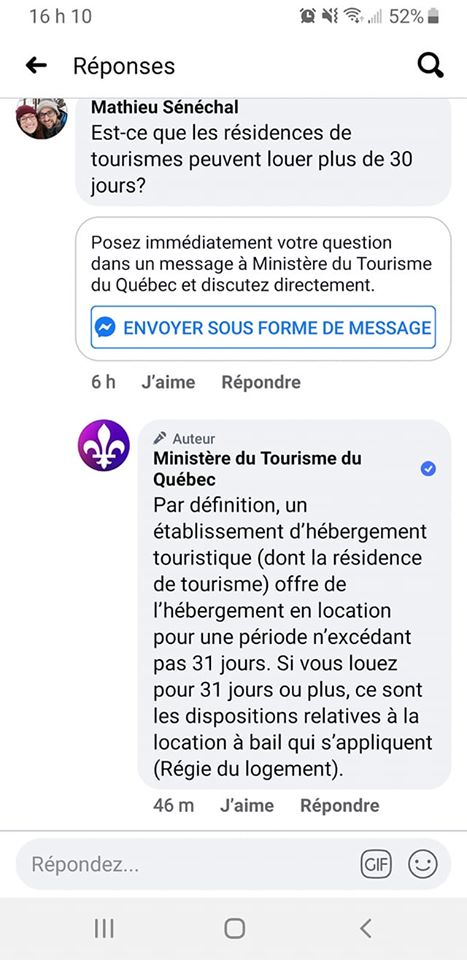 Bonne nouvelle, on peut louer à court terme quand c’est pas un touriste. L’association des Résidences de Tourisme du Québec a publié ceci le 19 mai: